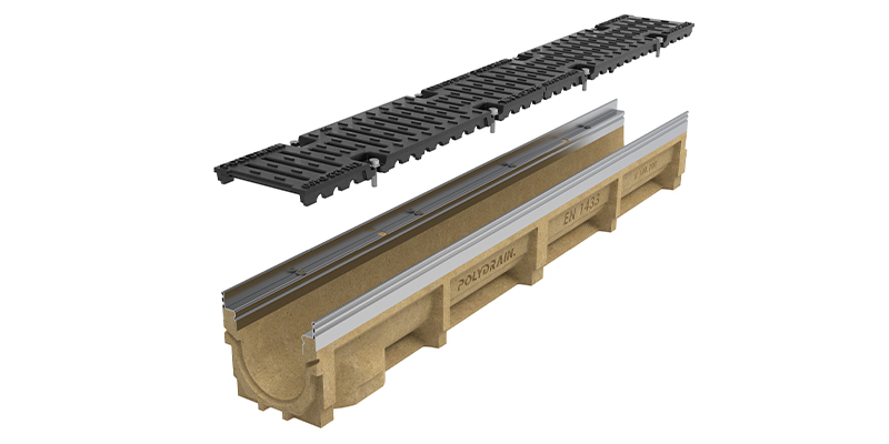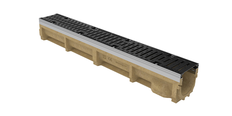 ProDrain Polymer Concrete channel drain features a ductile iron grating with the option of 6mm safeheel grating. With the galvanised edge, and a load rating of D400 it can withstand heavy-load such as public highways and parking areas for all types of vehicles. The polymer concrete body with galvanised steel edge performs to a very-high standard, very durable as it won't rot, warp or rust making it a very reliable channel drain.