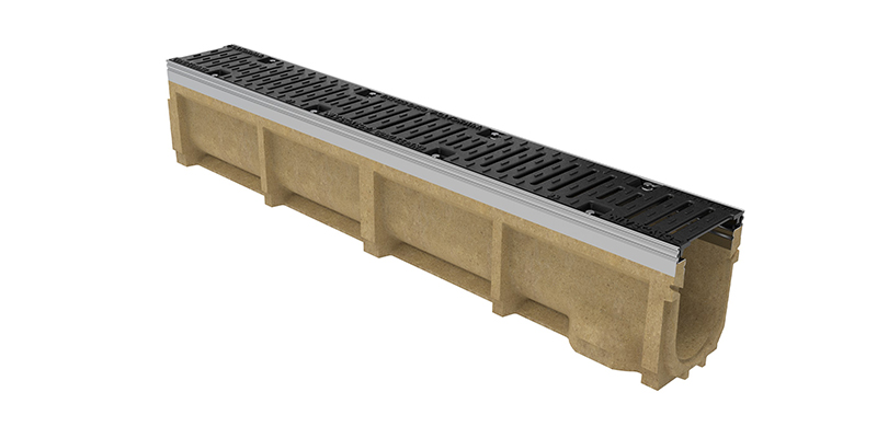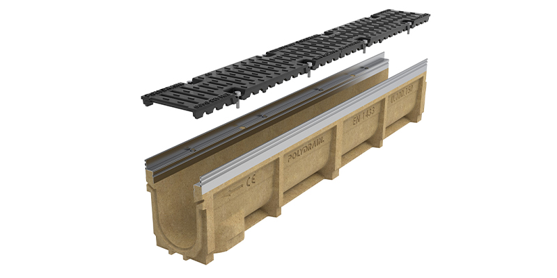 ProDrain Polymer Concrete channel drain features a ductile iron grating with the option of 6mm safeheel grating. With the galvanised edge, and a load rating of D400 it can withstand heavy-load such as public highways and parking areas for all types of vehicles. The polymer concrete body with galvanised steel edge performs to a very-high standard, very durable as it won't rot, warp or rust making it a very reliable channel drain.