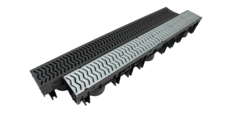 StormDrain Plus is a distinctive, high-quality, and efficient water management system, providing a complete solution for the collection and dispersal of surface water. To give it a seamless look, the channel drain comes in plastic [polypropylene] grating. Additionally, it has a heelguard design, which helps pedestrians feel safer when wearing heels.