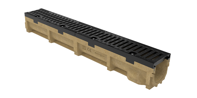 UltraDrain Polymer Concrete channel drain has a 10mm ductile iron grating. It can sustain extremely heavy loads thanks to its F900 load rating and ductile iron edge. The main locations for UltraDrain are ports, docks, industrial areas and airports. The performance of polymer concrete with a ductile iron edge is exceptionally good, given the quantity of oils and chemicals that can be left on these surfaces, the channels' exceptional resistance to chemical damage is vital.